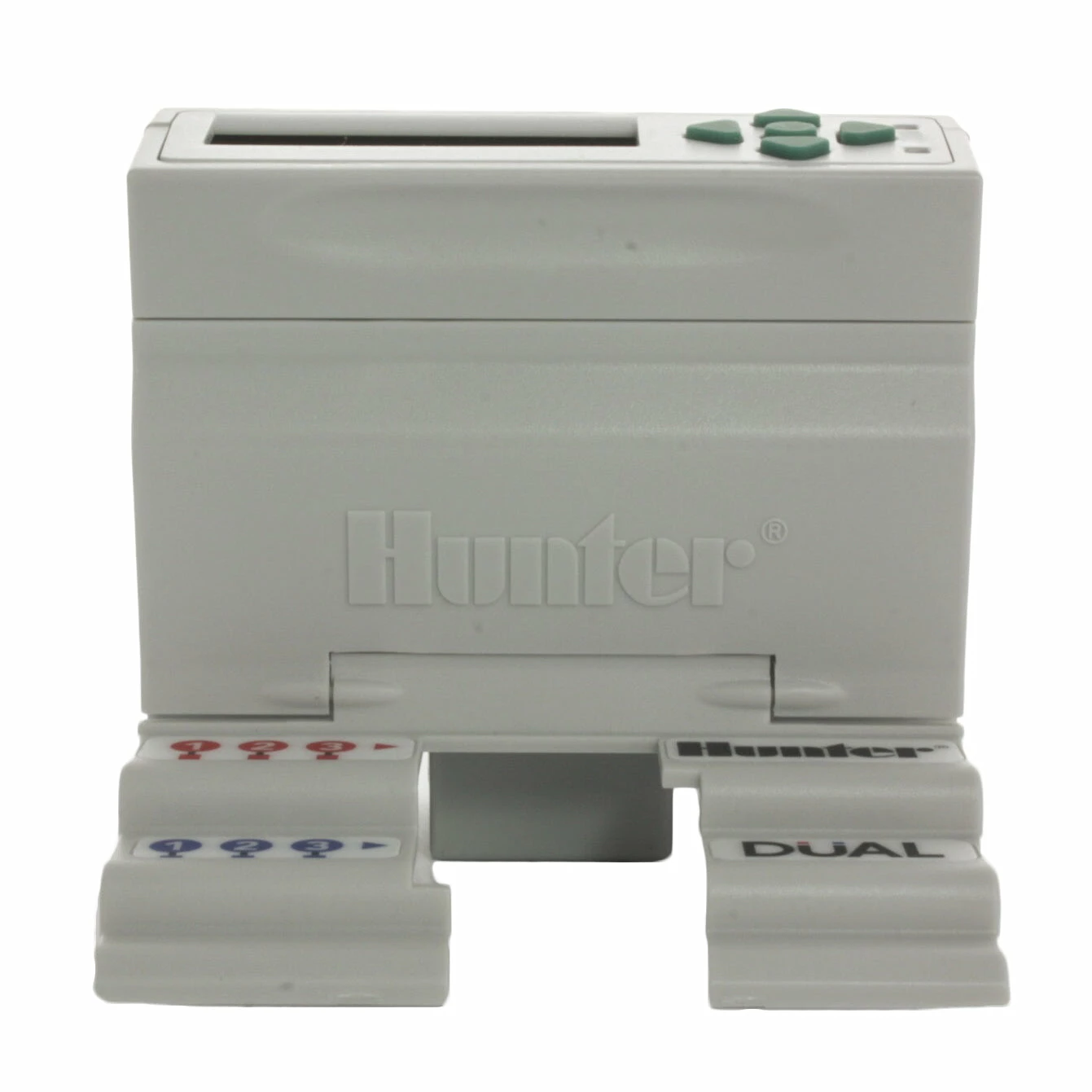 The DUAL48M decoder output module is designed for use in all Hunter I-CORE series controllers and provides two-wire decoder outputs for the Hunter DUAL family of field decoders. Dual decoders must be programmed with station numbers before they can operate. They can be programmed from the DUAL48M module itself, before installation, or at any time with the ICD-HP wireless handheld programmer.